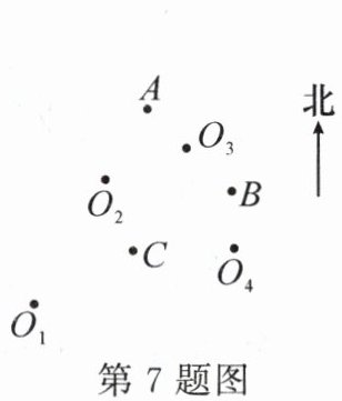 7. 如图,点A在观测点北偏东$30^{\circ}$方向,且与观测点的距离为8千米,将点A的位置记作$A(8,30^{\circ})$.用同样的方法将点B,点C的位置分别记作$B(8,60^{\circ})$,$C(4,60^{\circ})$,则观测点的位置应在(