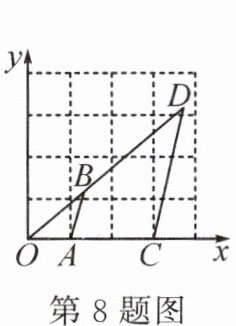 8. (2024·南阳名校期中联考)如图,在平面直角坐标系中,将△OAB 以原点 O 为位似中心放大后得到△OCD.若点 A(1,0),C(3,0),则△OAB 与△OCD 的面积比是(