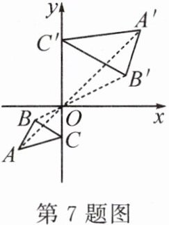 7. (2024·南阳南召县期中)如图,在平面直角坐标系中,△ABC 与△A′B′C′的相似比为 1:2,且位似中心是原点 O.若点 B(-2,-1),则其对应点 B′的坐标为(