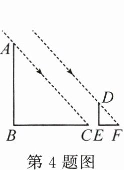4. 某项目学习小组为了测量直立在水平地面上的旗杆AB的高度,把标杆DE直立在同一水平地面上(如图).同一时刻测得旗杆和标杆在太阳光下的影长分别是BC=8.72 m,EF=2.18 m.已知点B,C,E,F在同一条直线上,AB⊥BC,DE⊥EF,DE=2.47 m,则AB=