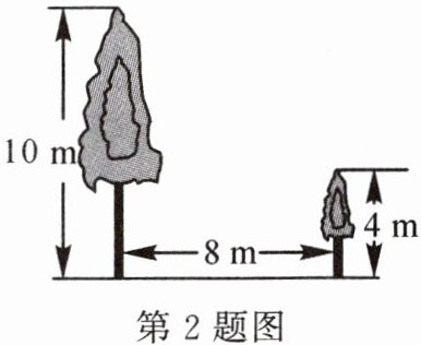 2. 如图,有两棵树,一棵高10 m,另一棵高4 m,两树相距8 m.一只小鸟从一棵树的树梢飞到另一棵树的树梢,小鸟至少飞行(