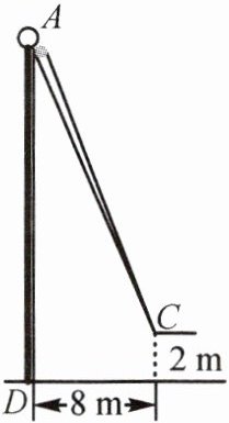 解:过点C作CB⊥AD于点B,则∠ABC=90°,BC=8m.设旗杆的高度为xm,则AC=AD=xm,AB=(x-2)m.在Rt△ABC中,AB²+BC²=AC²,即(x-2)²+8²=x²,解得x=17.答:旗杆的高度为17m.