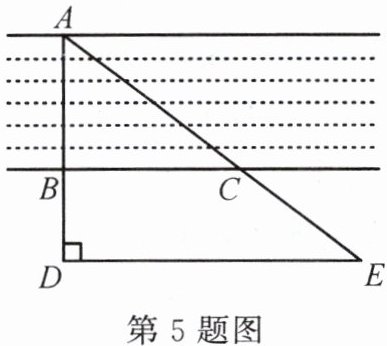 5. 如图,为了估计河的宽度,在河的对岸选定一个目标点A,在近岸取点B,C,D,E,使点A,B,D在一条直线上,且AD⊥DE,点A,C,E也在一条直线上,且DE//BC.如果BC=24 m,BD=12 m,DE=40 m,那么河的宽度AB为