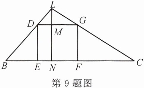 9. 如图,光源L与地面的距离LN为8米,与正方体大箱顶的距离LM为2米.已知箱子的棱长DG为6米,在光源照射下,箱子在左侧的影子BE长5米,则箱子在右侧的影子CF的长为
