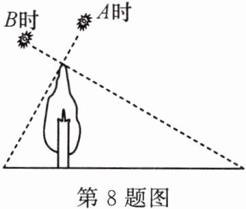 8. 如图,小明在A时测得直立于地面的某树的影长为3米,B时又测得该树的影长为12米.若两次日照的光线互相垂直,则树的高度为