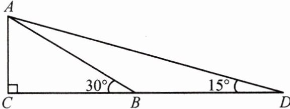 17. 构建几何图形解决代数问题是“数形结合”思想的重要性,在计算$\tan 15^{\circ}$时,如图,在$Rt\triangle ACB$中,$\angle C = 90^{\circ}$,$\angle ABC = 30^{\circ}$,延长$CB$使$BD = AB$,连结$AD$,得$\angle D = 15^{\circ}$,所以$\tan 15^{\circ}=\frac{AC}{CD}=\frac{1}{2+\sqrt{3}}=\frac{2-\sqrt{3}}{(2+\sqrt{3})(2-\sqrt{3})}=2-\sqrt{3}$。类比这种方法,计算$\tan 22.5^{\circ}$的值为(