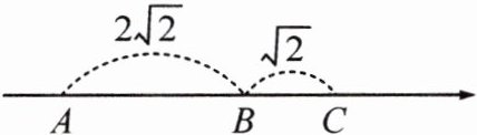 16. 如图所示,在一条不完整的数轴上从左到右依次有点$A$,$B$,$C$,其中$AB = 2\sqrt{2}$,$BC=\sqrt{2}$.设点$A$,$B$,$C$所对应数的和是$p$.