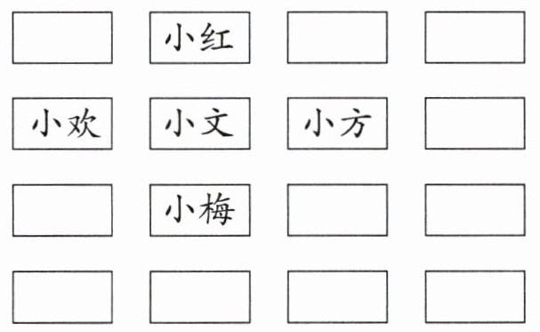 3. 小花的座位是第4排从右数第2个,请在图中标出小花的座位。