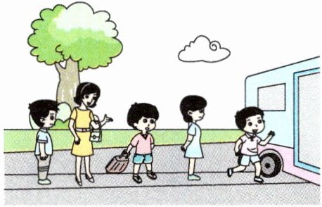 四、这是华华在排队等公交车时拍下的图片,填一填。