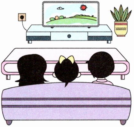 四、晚饭后,笑笑和爸爸妈妈一起看电视。