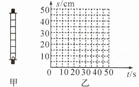 。(2)小明记录气泡上升一段路程后的实验数据如表所示,请你在图乙的坐标系中画出 $ s - t $ 图像。