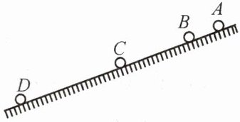 (填“加速”“减速”或“匀速”)运动。(2)若频闪照相机每隔 $ 0.2 $ s 拍摄一次,并测得 $ s_{AB} = 5 $ cm,$ s_{BC} = 15 $ cm,则小球在 $ BC $ 段的平均速度为