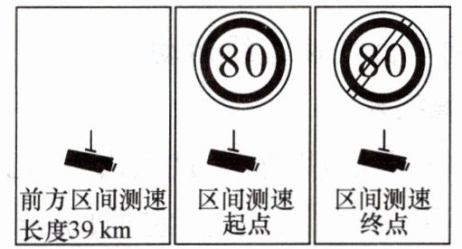 2. 如图所示是某高速路段路上的一个区间测速的相关标识,区间测速通过计算车辆通过该路段的平均车速,来判定车辆是否超速,某汽车以 70 km/h 的速度进入该区间测速路段(全长为 39 km)匀速行驶了一段距离后又以 100 km/h 的速度匀速行驶了 15 min,然后再以 70 km/h 的速度继续匀速行驶直至离开该区间测速路段。
