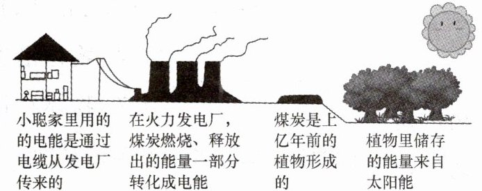 6. 小聪和同学们看下面的漫画,一同追踪家里用的电能的来源时纷纷发表了各自的观点,其中说法不正确的是(