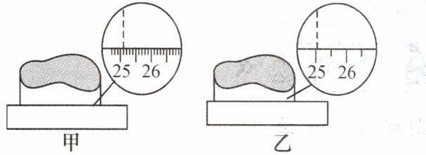 12. 清华附中校本经典题 通常情况下,人站立时的身高是脚长的7倍,如图是小明用两把分度值不同的刻度尺测出自己脚长的图片。