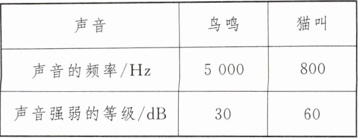 2. (2024·广州)监测器测得某次鸟鸣和猫叫的声音信息如下表,则 (