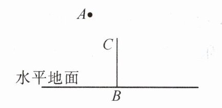 4. 如图所示,在路灯($A$点表示)的照射下,地面上出现了小树$BC$的影子$BD$,请根据光的直线传播知识画图确定点$D$的位置。