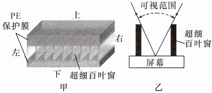 9. 如图甲为手机防窥膜结构图,贴在手机屏幕上的效果如图乙,只有正对着手机屏幕的使用者才能看清楚屏幕上的内容,其他人从旁边望过去,只能看到一片漆黑,是由于光