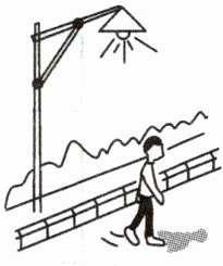 8. 如图所示,王派晚自习下课回家的路上,发现行人在路灯下经过时,行人影子的变化情况是(