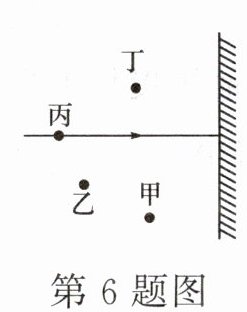 6. 如图,一束光垂直入射到平面镜上,反射光线经过的点是(