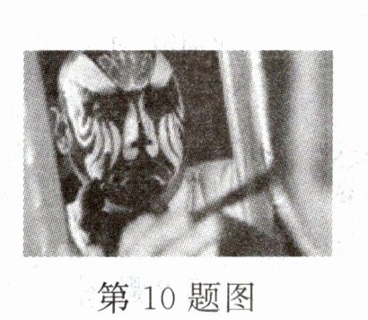 10. 脸谱是中国传统戏曲演员脸上的绘画,用于舞台演出时的化妆造型艺术。演员对着化妆镜画脸谱时,镜子中的像是
