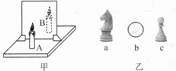 9. 用图甲中的器材探究平面镜成像的特点时,发现不容易得到像和物左右之间的关系。为解决这一问题,应选用图乙中的