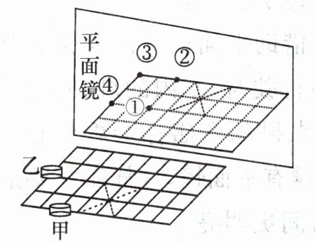 6. 如图所示,在中国象棋棋盘正中央竖立一块垂直于棋盘的平面镜,棋子“象”由甲移到乙,则平面镜中“象”的移动是 (