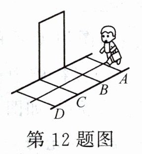 12. (2024·菏泽经开区期末)如图所示,走廊的墙边竖直立有一面镜子,小明沿$AD$从镜前经过,关于他的像,下列说法正确的是(