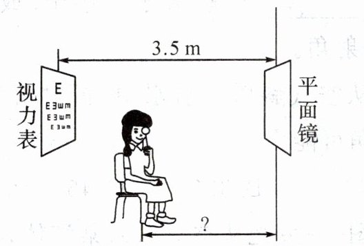 10. 视力检测时要求被测的人与视力表的距离为$5m$。如图所示,视力表与平面镜的距离是$3.5m$,为满足检测要求,人与平面镜的距离应为(