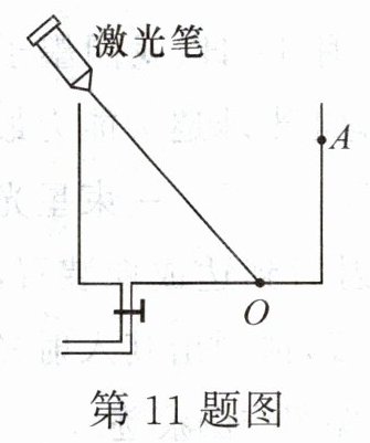 11. 如图所示,一支固定好的激光笔向空水槽底部固定点O射出一束激光。向水槽内加水使水面上升至A点,此时光斑在O点