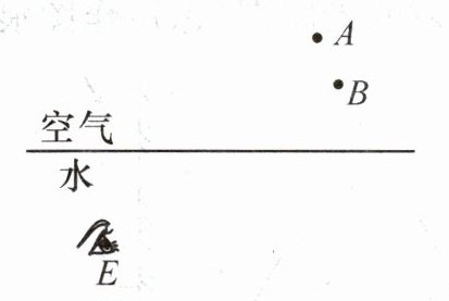 (填“A”或“B”)点是像所在的位置,在图中画出水下E处的潜水员看到路灯的光路图。