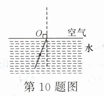 10. (2024·西宁)一束光从水中斜射入空气,请在图中画出折射光线的大致方向。