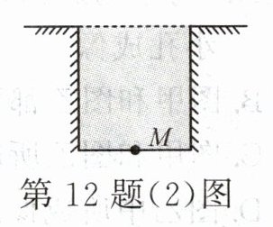 (2)一场大雨后,井中灌满积水,青蛙仍在井底 M 点“坐井观天”,请在图中大致画出青蛙通过积水能观察到的井外的范围。