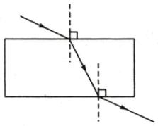 14. 一束平行光照射到长方形玻璃砖表面,请你画出光线通过玻璃砖的光路。