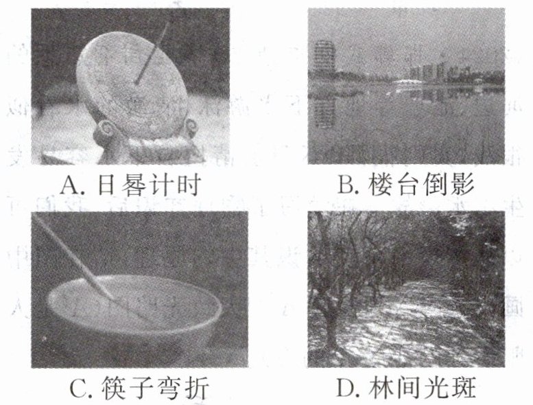 2. (2024·陕西)中国古诗词不仅文字优美、意境高远,还蕴含着丰富的科学知识。下列四幅图与诗句“掬水月在手,弄花香满衣”中所涉及的光现象相同的是(