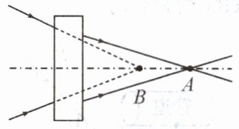 5. 如图所示,一束光经过一个透镜后会聚于主光轴上的点A,取掉透镜后,光会聚于点B,则该透镜起到