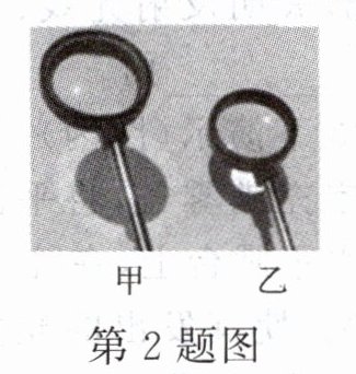 2. 把甲、乙两个透镜分别正对太阳光,在光屏上出现了如图所示的光斑,则甲为