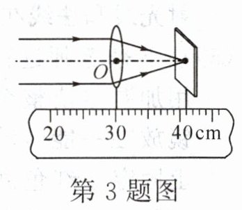 3. 在利用光具座进行凸透镜成像的实验时,如图所示,一束平行于凸透镜主光轴的光通过凸透镜后,在光屏上形成了一个最小、最亮的光斑。该凸透镜的焦距是