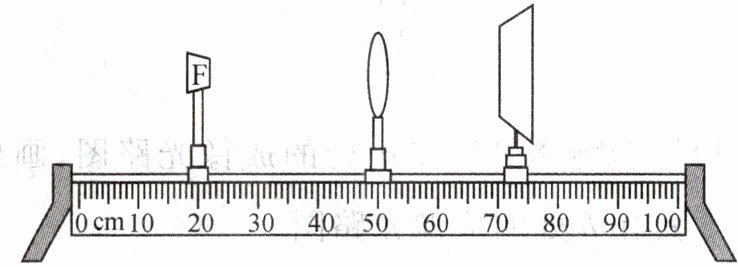 9. 如图所示,小红同学在探究凸透镜成像规律的实验中,将焦距f=15cm的凸透镜固定在光具座上50cm刻度线处,发光体固定在光具座上20cm刻度线处,之后应将光屏向