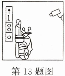 13. (2024·常州)《重庆市消防条例》规定:2023年7月1日起,禁止携带电动自行车或其电池进入电梯轿厢。一旦有人违规操作,会被电梯内的摄像头拍摄成像并智能识别,电梯将停止运行并发出声、光警报。如图所示,某次发出警报时,摄像头凸透镜成像的像距为10.1 mm,则凸透镜的焦距可能为(