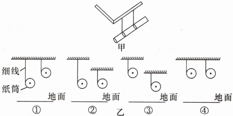 11. (2022·盐城)如图甲所示,细线上端固定,线按同一方向绕在轻质纸筒上,将纸筒从一定高度水平释放,发现纸筒在下落过程中偏离竖直方向。小明认为纸筒偏离竖直方向的距离与细线缠绕的圈数和下落的高度有关。现设计了图乙所示的①②③④四种方案,实验时细线的长度相同且均匀密绕在相同纸筒上。四种方案中能验证猜想的是(
