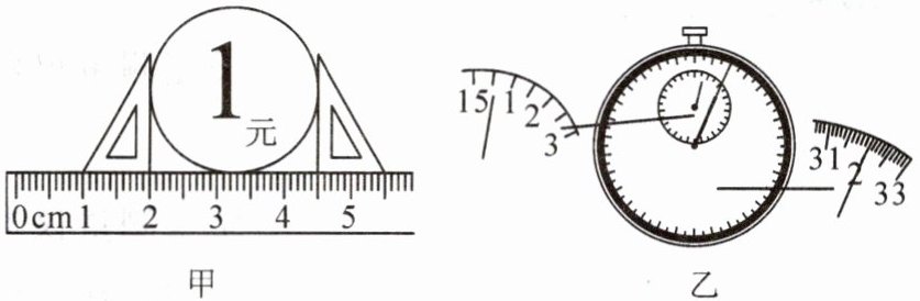 9. (2023·十堰)如图甲所示方法测出的硬币直径是
