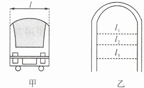 10. (2023·常州)如图甲所示,西班牙制造的新式列车车厢的宽度 $ l = 3.500 $ m。为判断新式列车车厢能否通过一处老式隧道,技术人员分别测量了隧道内部三处的宽度,如图乙所示,测量结果为 $ l_{1} = 3.600 $ m、 $ l_{2} = 3.480 $ m、 $ l_{3} = 3.540 $ m。技术人员使用的刻度尺分度值为