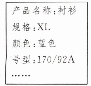 8. (2023·福建)如图是某衬衫吊牌的部分信息,号型“170/92A”表示适穿人群的特征参数及体型。“A”表示适用于一般体型,“170”表示身高 170 cm,“92”表示(