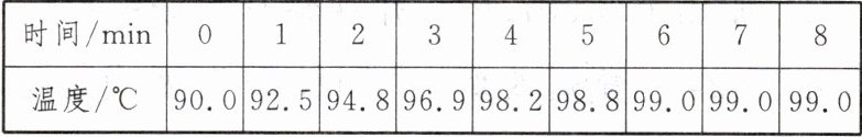 (1)按照图甲规范组装器材,用酒精灯给烧杯中的水加热,从水温达到90.0℃开始每隔1min记录一次水温,直到水沸腾一段时间后停止加热。数据记录如下表。