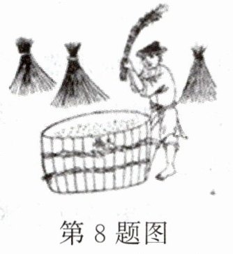 8.A|北京一零一校本经典题 如图所示为《天工开物》中描述的古代劳动人民在田间割稻、脱粒等情景,劳动人民将稻草撑开是通过