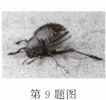 9. 动物对环境的适应能力是非常强的,如图,这是一种可收集水汽的沙漠甲虫。日落之后,甲虫迎着风并使身体呈倒立的姿势,由于它的背部温度