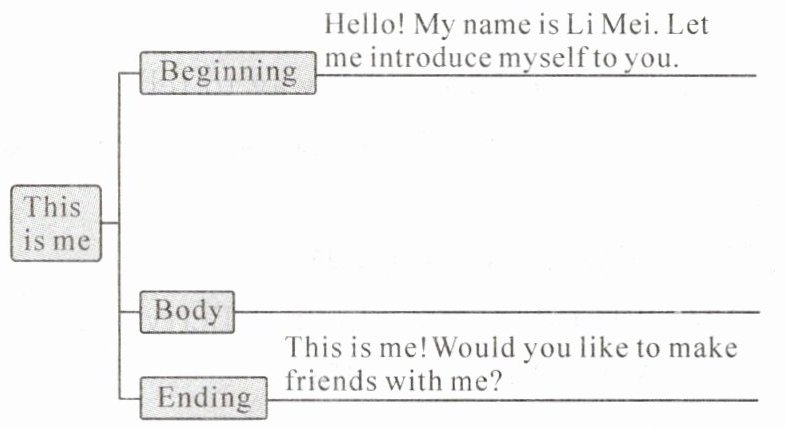 1. 说明文 2. 第一人称 3. 一般现在时 4. ①介绍自己的姓名和年龄 ②介绍学校和班级信息 ③描述外貌特征 ④讲述爱好和喜欢的科目;Body:I am thirteen years old. I live in... I study in... I have long black hair... I have a lot of hobbies. I like... I am also good at... I am interested in Maths;One possible version:This is meHello! My name is Li Mei. Let me introduce myself to you.I am thirteen years old. I live in Shanghai now. I study in No. 1 Middle School. I am in Class 4,Grade 7. I have long black hair and big eyes. I am tall and slim. I have a lot of hobbies. I like singing and dancing. I often do sport at the weekend. I am also good at playing Chinese chess. It’s very fun. I am interested in Maths. I am always ready to help my friends with their Maths problems.This is me! Would you like to make friends with me?
