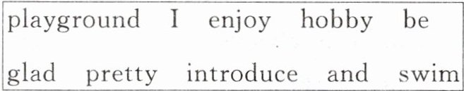 21. introduce 22. and 23. is 24. playground 25. pretty 26. my 27. hobbies 28. enjoy 29. swim 30. glad