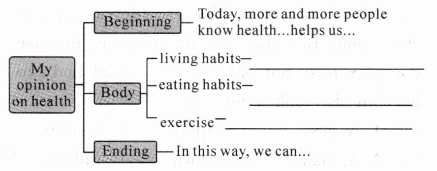 美好生活,健康同行。学校英语网站“VOICE OF TEENS”举行了以“My opinion on health”为题的征文活动。假如你是 Millie,请结合自己的经历和感受,用英语写一篇短文投稿,谈谈你对健康的看法。60词左右。